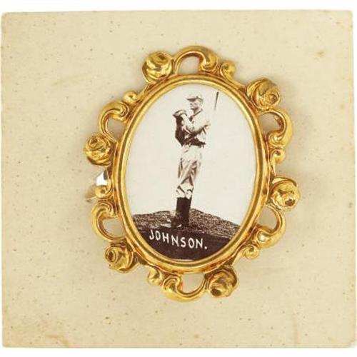 <B>1915 PM1 Ornate Frame Pins Walter Johnson.</B></I> The Big Train continued his fireballing dominance of the American League the season this pin was issued, taking the top position is such pitching categories as victories, strike outs, complete games and shut outs.<BR><BR> One of the most exciting "finds" of 2007 will present bidders in the Heritage Auction Galleries May 2008 Signature Sports Auction with the opportunity to own what are unquestionably the finest PM1 pins on the face of the earth. The nine pins were located by Heritage's consignors at an Arkansas flea market and purchased for a song, the seller unaware of the tremendous scarcity and importance of the treasures.<BR><BR> The discovery of these pins sheds a small beam of light upon an issue that still remains largely shrouded in mystery. Though it has been established that these Ornate-frame Pins date to 1915, the identity of the original issuer and the mode of distribution remain an enigma. This stunning assortment Mint pins adds a Hall of Famer to the known roster of PM1's, providing the hobby with its first look at a Chief Bender model. And the balance of the find, featuring Frank Baker, Frank Chance, Al Demaree, Ty Cobb, Johnny Evers (name only), Walter Johnson, Benny Kauff and Joe Tinker, each remain attached to its original 2x2" blank card, also never before encountered in the hobby.<BR><BR> Those few hobbyists who have met with this rare issue are well aware that condition problems are accepted as an inevitability when collecting PM1's, with oxidation and damage to the delicate metal frame and scratching of the central image present on essentially all existing specimens. The Mint condition of this Arkansas find is quite literally unprecedented, and should pique the interest of many elite collectors who demand nothing but the very best.<BR><BR><b>Shipping:</b> Miscellaneous Collectibles, Smal (<a target="_blank" href="http://www.heritageauctions.com/common/shipping.php">view shipping information</a>)