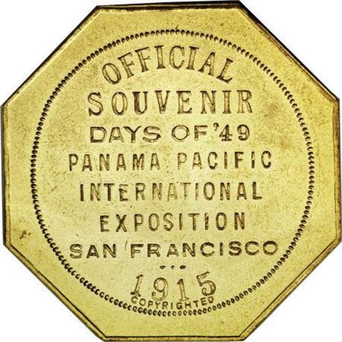 <B>1915 Panama-Pacific International Exposition So-Called Dollar, HK-425.</B></I> Gilt bronze, octagonal, 40 mm x 40 mm. Struck by Irvine & Jachens, Daly City, California, using oroide (commercial bronze) as the metal. This is a choice example of <B>HK-425</B></I> <B>Type II,</B></I> as listed in the Hibler-Kappen catalog. <BR><BR><b>Shipping:</b> Coins & Currency (<a target="_blank" href="http://www.heritageauctions.com/common/shipping.php">view shipping information</a>)