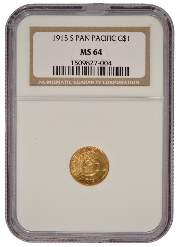 One 1915-S $1 Pan Pacific Gold Coin NGC MS64.