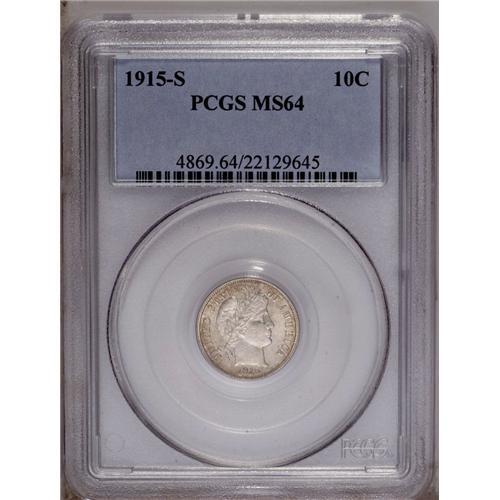 <B>1915-S 10C MS64 PCGS.</B></I> A bold striking that is just a few small facial marks from potential Gem status. Mottled coppery-gold toning is seen primarily about the obverse periphery.