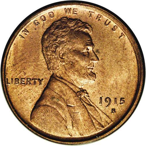 <B>1915-S<1C> MS64 Red and Brown NGC.</B></I> About 50 percent mint red with blushes of tan and violet. The luster is satiny and attractive. Lincoln's hair and the wheat ear details all show bold definition.