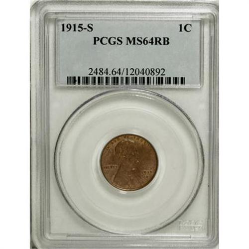 <B>1915-S 1C MS64 Red and Brown PCGS.</B></I> Rich red-brown coloration and bright, snappy mint luster are attributes of this near-Gem cent. The striking details are remarkably good, especially on Lincoln's hair and beard. Surface marks are minimal. <BR><BR><B>Coin Engraver:</B> Victor D. Brenner<BR><BR><b>Shipping:</b> Coins & Currency (<a target="_blank" href="http://www.heritageauctions.com/common/shipping.php">view shipping information</a>)