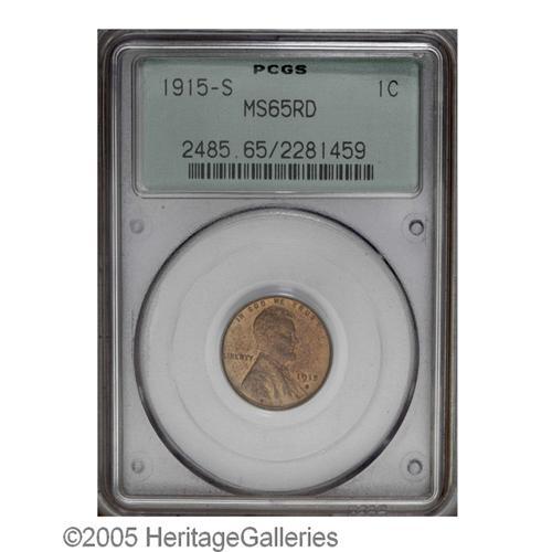 1915-S 1C MS65 Red PCGS. The strike is pleasing, since 1915-S[1C] MS65 Red PCGS.