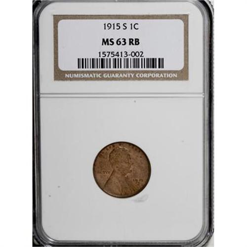 <B>1915-S 1C MS63 Red and Brown NGC.</B></I> NGC Census: (17/81). PCGS Population (27/115). Mintage: 4,833,000. Numismedia Wsl. Price for NGC/PCGS coin in MS63: $196. (#2484)<BR><BR><B>Coin Engraver:</B> Victor D. Brenner<BR><BR><b>Shipping:</b> Coins & Currency (<a target="_blank" href="http://www.heritageauctions.com/common/shipping.php">view shipping information</a>)