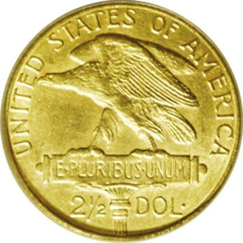 <B>1915-S<$2 1/2> Panama-Pacific Quarter Eagle--Improperly Cleaned--NCS. Unc Details.</B></I> Although this example is obviously cleaned with a few faint hairlines on each side, it has exceptional eye appeal for the described quality. The lustrous surfaces are light yellow with a hint of green.