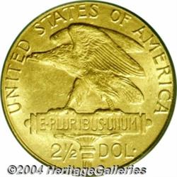 <B>1915-S<$2 1/2> Panama-Pacific Quarter Eagle MS64 PCGS.</B></I> The Pan-Pac Quarter Eagle is one of the scarcer commemorative gold coins and it is also one of the best designed. The net mintage of this issue was only 6,749 pieces, with a substantial number melted as unsold. This is lightly abraded example that has satiny mint luster. A few minor marks limit the grade. <BR><BR><B>Important notice:</B> Heritage usually auctions material at the rate of 200-250 lots per hour. On some occasions eBay Live bid software or the Internet may not be able to keep up with the pace of the auction. We recommend placing a realistic absentee bid now as insurance to avoid disappointment. Occasionally the auctioneer may eliminate or reject an eBay Live bid, and the auctioneer may also reopen a lot after the close of the eBay live bidding (usually because we missed an audience bid), and may reject your bid even if it shows you as the winning bidder. By bidding via eBay Live, you agree that Heritage may award the lot to another bidder at its sole discretion under the circumstances described above or any other reasonable circumstances. Since eBay bids are not shown to us until we open the lot on the floor, we treat those bids just like floor bids. In most cases the floor responds before the eBay bid is presented to us, due to Internet lag time, so for consistency we have made it a policy that floor bids are always considered first over tie eBay live bids. Also please note that all Heritage lots purchased through eBay Live carry a 20% Buyer's Premium. Please make sure you read the Terms and Conditions before you bid. </span></font></tr></table></td></tr></table>