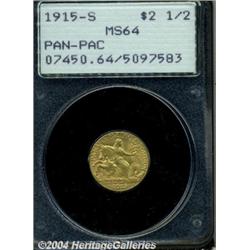 <B>1915-S<$2 1/2> Panama-Pacific Quarter Eagle MS64 PCGS.</B></I> Nicely frosted with a matte-like brilliance to the fields and appealing, original color. Nearly of Gem quality and one of the scarcer gold commemoratives in like condition. Housed in an early PCGS holder. <BR><BR><B>Important notice:</B> Heritage usually auctions material at the rate of 200-250 lots per hour. On some occasions eBay Live bid software or the Internet may not be able to keep up with the pace of the auction. We recommend placing a realistic absentee bid now as insurance to avoid disappointment. Occasionally the auctioneer may eliminate or reject an eBay Live bid, and the auctioneer may also reopen a lot after the close of the eBay live bidding (usually because we missed an audience bid), and may reject your bid even if it shows you as the winning bidder. By bidding via eBay Live, you agree that Heritage may award the lot to another bidder at its sole discretion under the circumstances described above or any other reasonable circumstances. Since eBay bids are not shown to us until we open the lot on the floor, we treat those bids just like floor bids. In most cases the floor responds before the eBay bid is presented to us, due to Internet lag time, so for consistency we have made it a policy that floor bids are always considered first over tie eBay live bids. Also please note that all Heritage lots purchased through eBay Live carry a 20% Buyer's Premium. Please make sure you read the Terms and Conditions before you bid. </span></font></tr></table></td></tr></table>