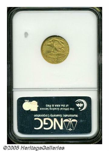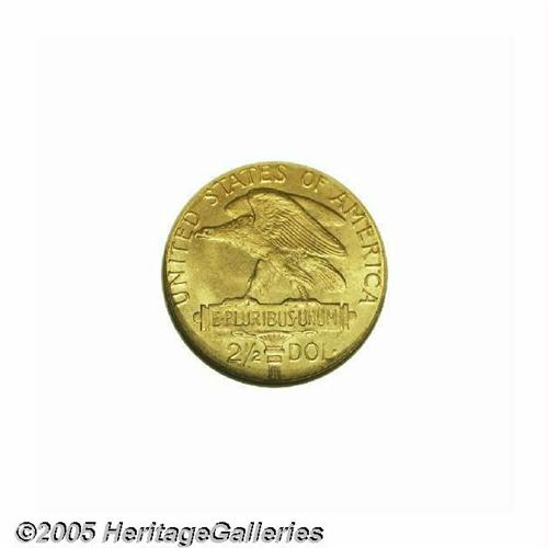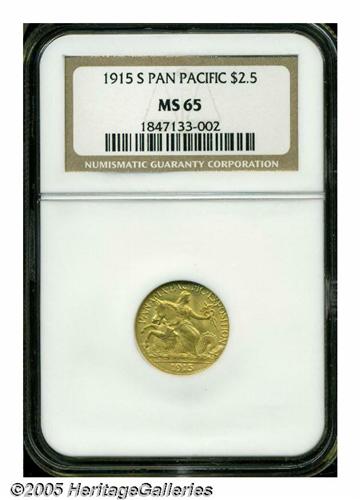<B>1915-S<$2 1/2> Panama-Pacific Quarter Eagle MS65 NGC.</B></I> The Pan-Pac quarter eagle is the only gold commemorative of this denomination besides the Sesquicentennial, and additional demand for this coin comes from collectors who specialize in Panama-Pacific Exposition memorabilia. The current Pan-Pac specimen displays warm honey-gold patina underlain by soft luster. The design elements are sharply defined, and the well preserved surfaces are devoid of mentionable marks.