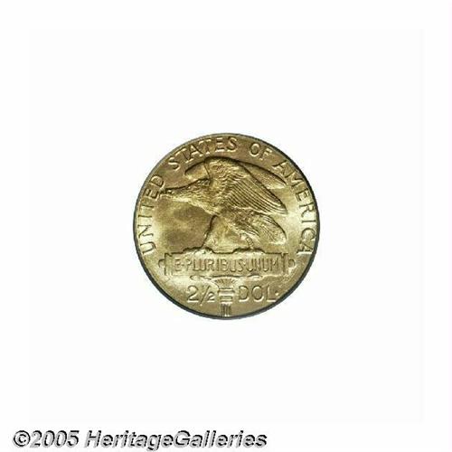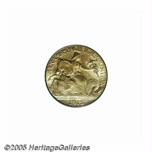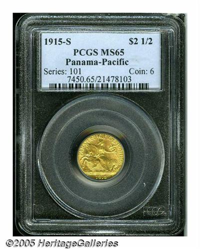 <B>1915-S<$2 1/2> Panama-Pacific Quarter Eagle MS65 PCGS.</B></I> This originally preserved Gem displays warm lemon-gold color that assumes an even appearance overall. We are unable to find a single abrasion that would cause one to question the assigned grade.