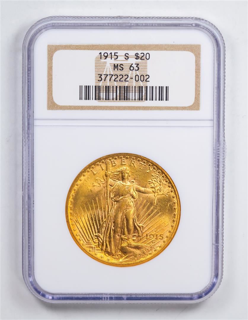 One 1915-S $20 Double Eagle Gold Coin NGC MS63.