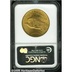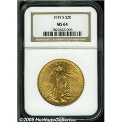 <B>1915-S $20 MS64 NGC.</B></I> A good strike and vibrant luster accompany this attractive and problem-free near-Gem. Because of World War I, the Denver Mint did not strike Double Eagles in 1915, the first omission since it began production in 1906.