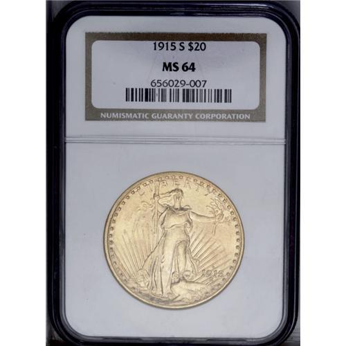1915-S $20 MS64 NGC. Both sides have pleasing luster,