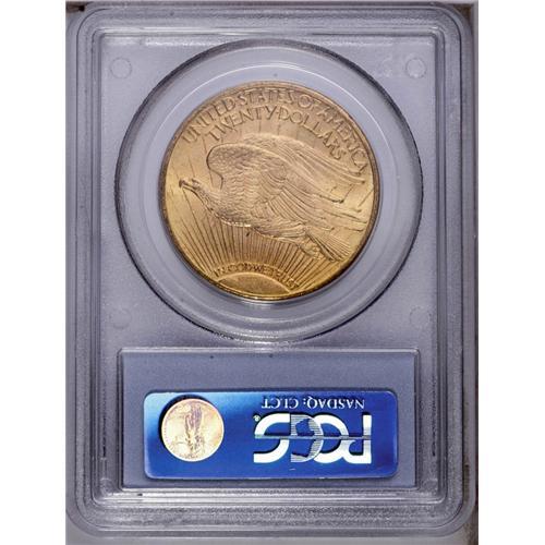 <B>1915-S<$20> MS64 PCGS.</B></I> Boldly struck and lustrous with pleasing red-gold coloration and matte-like surfaces. The reverse is nearly blemish-free, while a single small abrasion is noted on the obverse, on Liberty's lower abdomen. <BR><BR><B>Important notice:</B> Heritage usually auctions material at the rate of 200-250 lots per hour. On some occasions eBay Live bid software or the Internet may not be able to keep up with the pace of the auction. We recommend placing a realistic absentee bid now as insurance to avoid disappointment. Occasionally the auctioneer may eliminate or reject an eBay Live bid, and the auctioneer may also reopen a lot after the close of the eBay live bidding (usually because we missed an audience bid), and may reject your bid even if it shows you as the winning bidder. By bidding via eBay Live, you agree that Heritage may award the lot to another bidder at its sole discretion under the circumstances described above or any other reasonable circumstances. Since eBay bids are not shown to us until we open the lot on the floor, we treat those bids just like floor bids. In most cases the floor responds before the eBay bid is presented to us, due to Internet lag time, so for consistency we have made it a policy that floor bids are always considered first over tie eBay live bids. Also please note that all Heritage lots purchased through eBay Live carry a 20% Buyer's Premium. Please make sure you read the Terms and Conditions before you bid. This lot is being auctioned in conjunction with a live floor auction by Heritage Galleries & Auctioneers. All final auction and invoice information will be supplied by Heritage Galleries & Auctioneers, and all other information should be considered preliminary. Lot:4647 <BR><BR><B>Winning Notification and Billing:</B> After the FINAL session in this auction is complete, Heritage will send e-mail and snail mail invoices. This process normally takes several days. All final auction and invoice information will be supplied by Heritage Galleries & Auctioneers, and all other information should be considered preliminary. <BR><BR>This auction will be conducted on a live auction floor and over the Internet through eBay Live. If you choose to place an absentee bid, please take a moment to <font color='#0000ff'><u><a href='http://pages.ebay.com/liveauctions/help/before/laabsentee.html'>learn how eBay Live absentee bidding works</a></u></font><font color='#000000'>