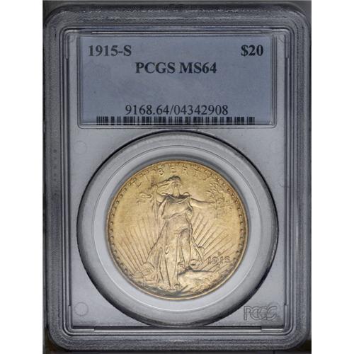 1915-S $20 MS64 PCGS. The grainy, matte-like surfaces
