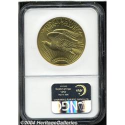 <B>1915-S<$20> MS65 NGC.</B></I> A bright, clean, lustrous red-gold Gem, with bold striking details throughout, and a well preserved appearance overall.<BR><I>From The Sarasota Collection.</B></I> <BR><BR><B>Important notice:</B> Heritage usually auctions material at the rate of 200-250 lots per hour. On some occasions eBay Live bid software or the Internet may not be able to keep up with the pace of the auction. We recommend placing a realistic absentee bid now as insurance to avoid disappointment. Occasionally the auctioneer may eliminate or reject an eBay Live bid, and the auctioneer may also reopen a lot after the close of the eBay live bidding (usually because we missed an audience bid), and may reject your bid even if it shows you as the winning bidder. By bidding via eBay Live, you agree that Heritage may award the lot to another bidder at its sole discretion under the circumstances described above or any other reasonable circumstances. Since eBay bids are not shown to us until we open the lot on the floor, we treat those bids just like floor bids. In most cases the floor responds before the eBay bid is presented to us, due to Internet lag time, so for consistency we have made it a policy that floor bids are always considered first over tie eBay live bids. Also please note that all Heritage lots purchased through eBay Live carry a 20% Buyer's Premium. Please make sure you read the Terms and Conditions before you bid. </span></font></tr></table></td></tr></table>
