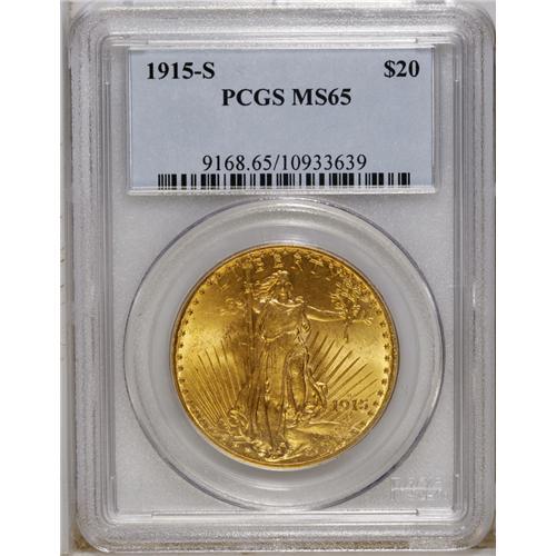 1915-S $20 MS65 PCGS. A nicely well struck example wit