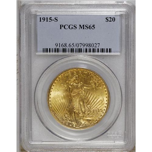1915-S $20 MS65 PCGS. Bright and satiny, with pleasing
