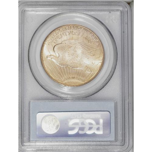 1915-S $20 MS65 PCGS. Hints of orange are visible near