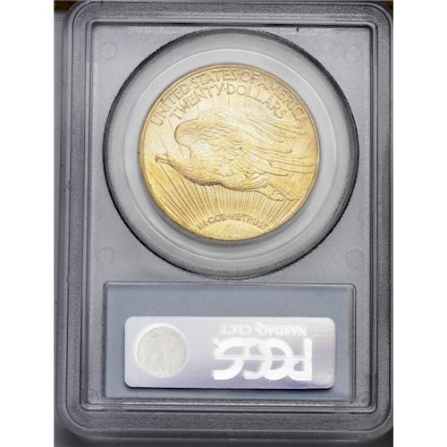 <B>1915-S<$20> MS65 PCGS.</B></I> This is a delightful Gem with the pebbled surfaces typical of many silver and gold coins from this period. The surfaces are fully brilliant with frosty gold luster, ranging from light yellow to deeper lemon-yellow color.