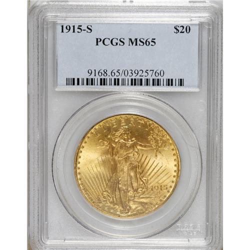 1915-S $20 MS65 PCGS. This lovely twenty dollar piece