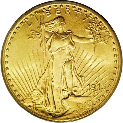 <B>1915-S<$20> MS66 PCGS.</B></I> Although fairly abundant in lesser Uncirculated grades, up to and including MS65 quality, Premium Gem examples of the 1915-S Saint have remained elusive. This beautiful matte-textured example displays pinpoint sharpness and has been spared from all but the tiniest luster grazes.