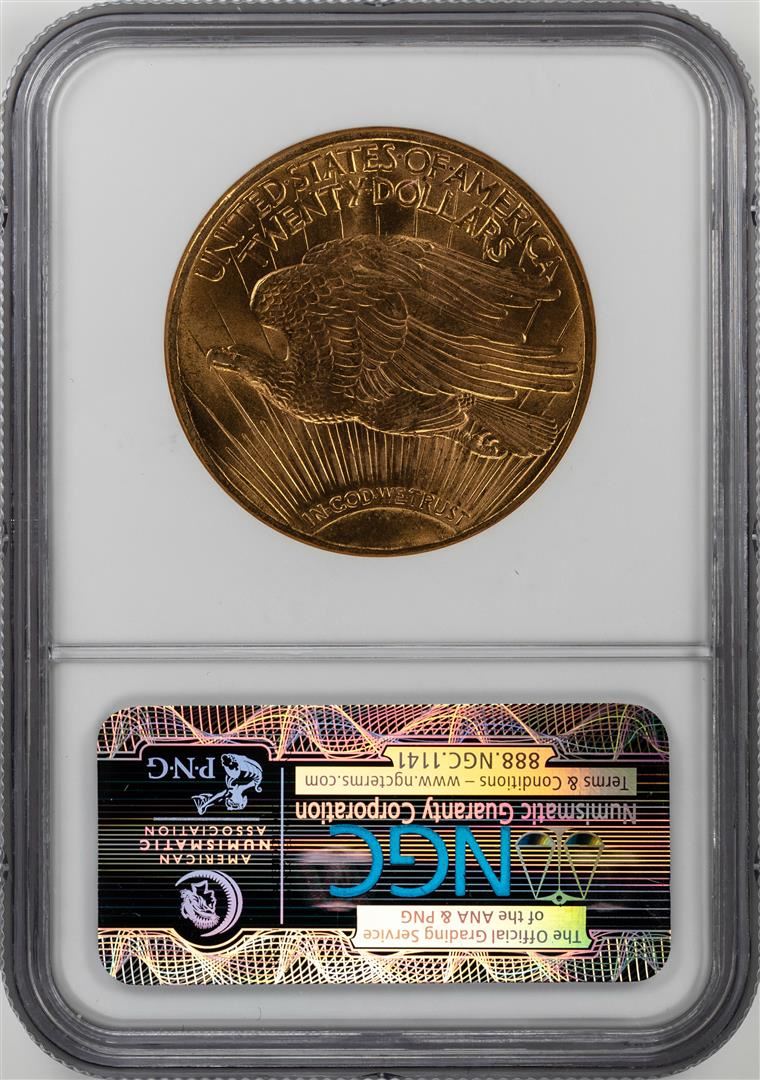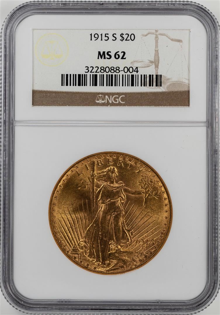 One 1915-S $20 St. Gaudens Double Eagle Gold Coin NGC MS62. NGC Certified.