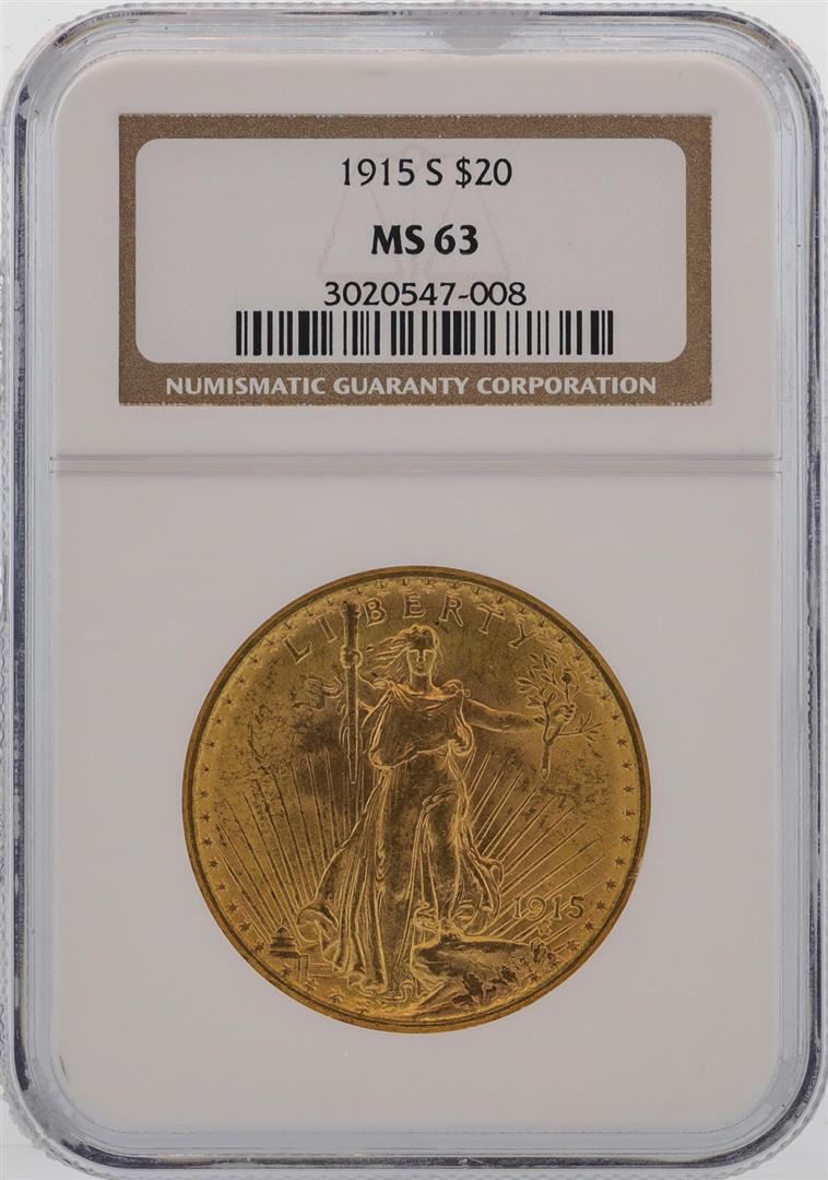 One 1915-S $20 St. Gaudens Double Eagle Gold Coin NGC MS63. NGC Certified.