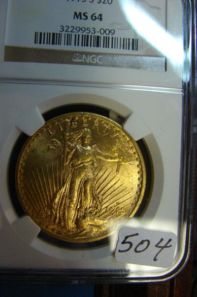 1915 S $20 St. Gaudens Gold Coin NGC MS64