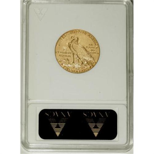 <B>1915-S $5 AU58 ANACS.</B></I> This khaki-gold survivor is bright and satiny, with lightly abraded surfaces that show modest wear on the highpoints of the Indian Head design. This San Francisco Mint issue is very scarce at all levels of preservation, and especially so in Mint State. <BR><BR><B>Coin Engraver:</B> Bela Lyon Pratt<BR><BR><b>Shipping:</b> Coins & Currency (<a target="_blank" href="http://www.heritageauctions.com/common/shipping.php">view shipping information</a>)
