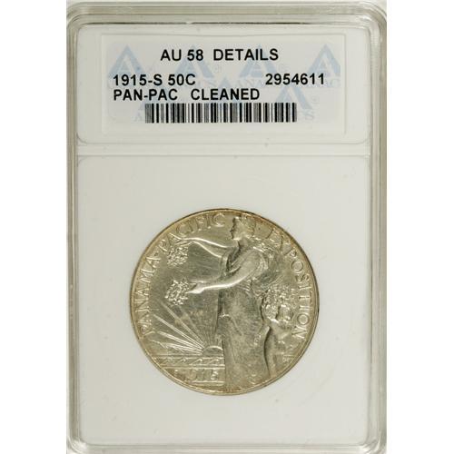 1915-S 50C Panama-Pacific--Cleaned--ANACS. AU58 Deta