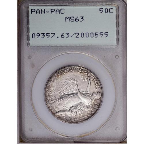 1915-S 50C Panama-Pacific MS63 PCGS. Golden-brown and 1915-S[50C] Panama-Pacific MS63 PCGS.