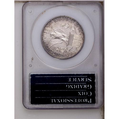 <B>1915-S<50C> Panama-Pacific MS63 PCGS.</B></I> Golden-brown and aqua freckles grace the margins, while the centers are brilliant. A satiny piece with a solitary mark concealed near the base of the shield. The mintmark is repunched widely north. Certified in a first generation holder.