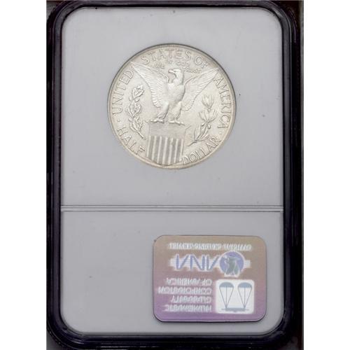 <B>1915-S<50C> Panama-Pacific MS64 NGC.</B></I> A satiny example with silvery-gray color and full luster on each side. This commemorative half dollar issue was a joint venture with the obverse designed by Charles Barber and the reverse by George Morgan.