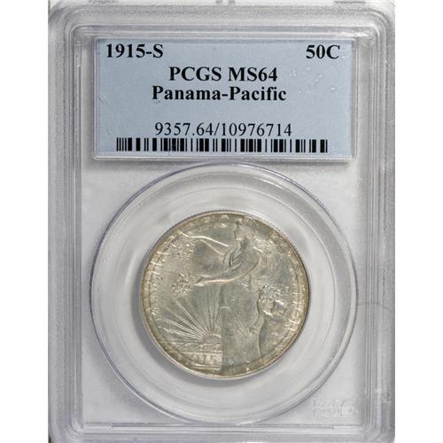 1915-S 50C Panama-Pacific MS64 PCGS. A softly lustrous