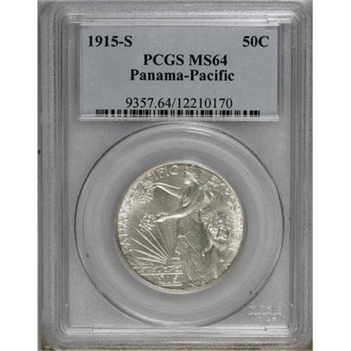 <B>1915-S 50C Panama-Pacific MS64 PCGS.</B></I> FS-501. The mintmark is repunched southeast. Satiny and nearly brilliant with only minor contact. A better early silver commemorative type.<BR><BR><b>Shipping:</b> Coins & Currency (<a target="_blank" href="http://www.heritageauctions.com/common/shipping.php">view shipping information</a>)