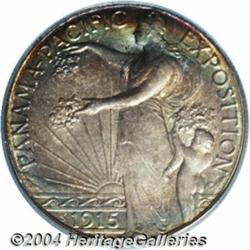 <table><tr><td><TABLE cellSpacing=0 cellPadding=0 width="100%" bgColor=#000000 border=0><TBODY> <TR><TD width="100%"><TABLE cellSpacing=1 cellPadding=3 width="100%" border=0><TBODY><TR><TD width="100%" bgColor=#79735c><FONT face=arial color=#ffffff size=3><B>Description</B> </FONT></TD></TR><TR><TD width="100%" bgColor=#ffffff><FONT face=arial size=2><B>1915-S 50C Panama-Pacific MS65 ICG.</B></I> The satiny mint luster is virtually devoid of even the smallest abrasions, but what really grabs the attention of the viewer is the color scheme on this coin. Medium density gray-lilac toning is seen in the center of the obverse with bands of iridescent, multicolored coloration at the top and bottom of that side. The reverse has more even golden-rose coloration with a light accent of blue around the margin. </FONT></TD></TR></TBODY></TABLE></TD></TR></TBODY></TABLE><BR><A name=PricesRealized></A><TABLE cellSpacing=0 cellPadding=0 width="100%" bgColor=#000000 border=0><TBODY><TR><TD width="100%"><TABLE cellSpacing=1 cellPadding=3 width="100%" border=0><TBODY><TR><TD width="100%" bgColor=#79735c><A name=PR><FONT face=arial color=#ffffff size=3><B>Previous Prices from Heritage Auctions</B> </FONT></A></TD></TR><TR><TD bgColor=#f6f6ed><TABLE cellSpacing=0 cellPadding=0 width="100%" border=1><TBODY><TR><TD align=middle width="33%"><B>Date</B></TD><TD align=middle width="33%"><B>Service</B></TD><TD align=middle width="33%"><B>Price</B></TD></TR><TR bgColor=whitesmoke><TD width="33%"><B>09/30/2003</B></TD><TD width="33%">NGC</TD><TD width="33%">$1,496.15</TD></TR><TR bgColor=whitesmoke><TD width="33%"><B>12/31/2002</B></TD><TD width="33%">NGC</TD><TD width="33%">$1,667.50</TD></TR><TR bgColor=whitesmoke><TD width="33%"><B>09/17/2002</B></TD><TD width="33%">NGC</TD><TD width="33%">$1,667.50</TD></TR><TR bgColor=whitesmoke><TD width="33%"><B>03/06/2001</B></TD><TD width="33%">PCGS</TD><TD width="33%">$2,000.00</TD></TR><TR bgColor=whitesmoke><TD width="33%"><B>11/30/1999</B></TD><TD width="33%">PCGS</TD><TD width="33%">$1,700.00</TD></TR><TR bgColor=whitesmoke><TD width="33%"><B>01/07/2004</B></TD><TD width="33%">PCGS</TD><TD width="33%">$1,782.50</TD></TR><TR bgColor=whitesmoke><TD width="33%"><B>09/20/2003</B></TD><TD width="33%">NGC</TD><TD width="33%">$1,495.00</TD></TR><TR bgColor=whitesmoke><TD width="33%"><B>05/03/2003</B></TD><TD width="33%">NGC</TD><TD width="33%">$1,495.00</TD></TR><TR bgColor=whitesmoke><TD width="33%"><B>01/11/2003</B></TD><TD width="33%">NGC</TD><TD width="33%">$1,495.00</TD></TR><TR bgColor=whitesmoke><TD width="33%"><B>09/28/2002</B></TD><TD width="33%">PCGS</TD><TD width="33%">$2,012.50</TD></TR><TR bgColor=whitesmoke><TD width="33%"><B>07/30/2002</B></TD><TD width="33%">PCGS</TD><TD width="33%">$2,185.00</TD></TR><TR bgColor=whitesmoke><TD width="33%"><B>04/27/2002</B></TD><TD width="33%">NGC</TD><TD width="33%">$2,012.50</TD></TR><TR bgColor=whitesmoke><TD width="33%"><B>02/23/2002</B></TD><TD width="33%">NGC</TD><TD width="33%">$1,495.00</TD></TR><TR bgColor=whitesmoke><TD width="33%"><B>10/06/2001</B></TD><TD width="33%">NGC</TD><TD width="33%">$1,495.00</TD></TR><TR bgColor=whitesmoke><TD width="33%"><B>08/08/2001</B></TD><TD width="33%">PCGS</TD><TD width="33%">$2,185.00</TD></TR><TR bgColor=whitesmoke><TD width="33%"><B>05/31/2001</B></TD><TD width="33%">PCGS</TD><TD width="33%">$2,530.00</TD></TR><TR bgColor=whitesmoke><TD width="33%"><B>02/23/2001</B></TD><TD width="33%">PCGS</TD><TD width="33%">$1,667.50</TD></TR><TR bgColor=whitesmoke><TD width="33%"><B>01/05/2001</B></TD><TD width="33%">NGC</TD><TD width="33%">$1,725.00</TD></TR><TR bgColor=whitesmoke><TD width="33%"><B>10/06/2000</B></TD><TD width="33%">NGC</TD><TD width="33%">$1,207.50</TD></TR><TR bgColor=whitesmoke><TD width="33%"><B>08/07/2000</B></TD><TD width="33%">PCGS</TD><TD width="33%">$1,610.00</TD></TR><TR bgColor=whitesmoke><TD width="33%"><B>02/11/2000</B></TD><TD width="33%">PCGS</TD><TD width="33%">$2,185.00</TD></TR><TR bgColor=whitesmoke><TD width="33%"><B>09/25/1999</B></TD><TD width="33%">PCGS</TD><TD width="33%">$2,127.50</TD></TR><TR bgColor=whitesmoke><TD width="33%"><B>08/13/1999</B></TD><TD width="33%">PCGS</TD><TD width="33%">$2,415.00</TD></TR><TR bgColor=whitesmoke><TD width="33%"><B>08/14/1999</B></TD><TD width="33%">PCGS</TD><TD width="33%">$1,840.00</TD></TR><TR bgColor=whitesmoke><TD width="33%"><B>11/21/1997</B></TD><TD width="33%">NGC</TD><TD width="33%">$1,045.00</TD></TR><TR bgColor=whitesmoke><TD width="33%"><B>10/04/1997</B></TD><TD width="33%">NGC</TD><TD width="33%">$1,650.00</TD></TR><TR bgColor=whitesmoke><TD width="33%"><B>09/21/1996</B></TD><TD width="33%">PCGS</TD><TD width="33%">$1,760.00</TD></TR><TR bgColor=whitesmoke><TD width="33%"><B>10/07/1995</B></TD><TD width="33%">PCGS</TD><TD width="33%">$1,870.00</TD></TR><TR bgColor=whitesmoke><TD width="33%"><B>08/19/1995</B></TD><TD width="33%">NGC</TD><TD width="33%">$1,210.00</TD></TR><TR bgColor=whitesmoke><TD width="33%"><B>06/04/1995</B></TD><TD width="33%">NGC</TD><TD width="33%">$1,430.00</TD></TR><TR bgColor=whitesmoke><TD width="33%"><B>07/30/1994</B></TD><TD width="33%">NGC</TD><TD width="33%">$1,980.00</TD></TR><TR bgColor=whitesmoke><TD width="33%"><B>05/06/1994</B></TD><TD width="33%">PCGS</TD><TD width="33%">$1,980.00</TD></TR><TR bgColor=whitesmoke><TD width="33%"><B>11/12/1993</B></TD><TD width="33%">PCGS</TD><TD width="33%">$2,090.00</TD></TR><TR bgColor=whitesmoke><TD width="33%"><B>07/27/1993</B></TD><TD width="33%">NGC</TD><TD width="33%">$1,705.00</TD></TR></TBODY></TABLE></TD></TR><TR><TD bgColor=#ffffff><FONT face=arial size=1 ?>PLEASE NOTE: All prices realized reflect the final hammer price PLUS the buyer's premium in auctions that charge a buyer's premium. Each item has a notation at the top of the listing indicating whether that lot included a buyer's premium. Example: A item that sells with a final hammer price of $100 and a 20% buyer's premium will display with a price realized of $120. Al
