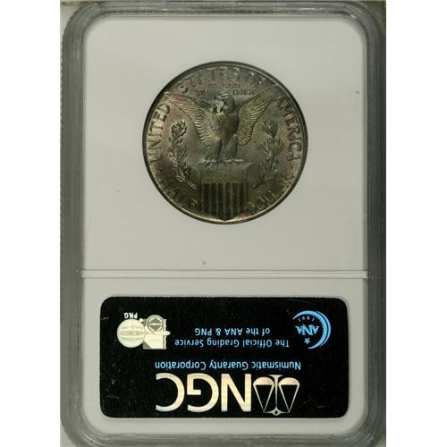 <B>1915-S 50C Panama-Pacific MS65 NGC.</B></I> A lustrous Gem, well-detailed with pleasing plum and reddish-gold patina. A handful of trivial marks are noted on the gown and in the nearby fields.<BR><BR><b>Shipping:</b> Coin/Currency (<a target="_blank" href="http://www.heritageauctions.com/common/shipping.php">view shipping information</a>)