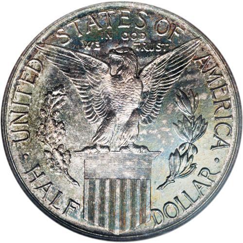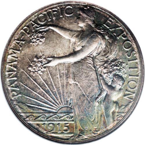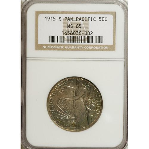 <B>1915-S 50C Panama-Pacific MS65 NGC.</B></I> Lovely pastel rose, sage, and ocher toning graces each side of this Gem commemorating the opening of the Panama Canal and the San Francisco exposition of the following year that feted the same event.<BR><I>From The Cary & Cheryl Porter Collection.</B></I><BR><BR><b>Shipping:</b> Coins & Currency (<a target="_blank" href="http://www.heritageauctions.com/common/shipping.php">view shipping information</a>)