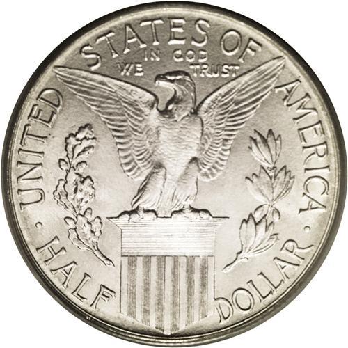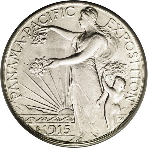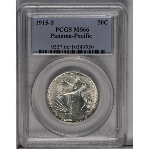 <B>1915-S<50C> Panama-Pacific MS66 PCGS.</B></I> Basically untoned and silver-white, with abundant luster and nearly mark-free surfaces. A couple of reeding marks and a tick in the left obverse field are noted under a glass. A problem-free Gem example of this popular commemorative issue.
