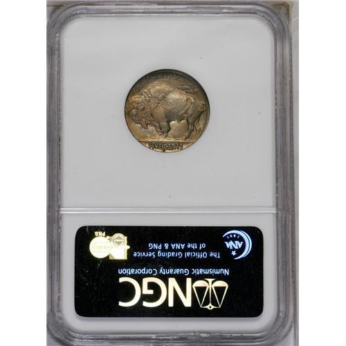 <B>1915-S<5C> MS62 NGC.</B></I> Soft, frosty luster with finely granular surfaces and rainbow peripheral iridescence on both sides.