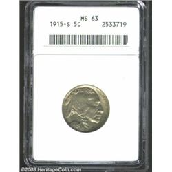 <TABLE cellSpacing=0 cellPadding=0 width="100%" bgColor=#000000 border=0><TBODY><TR><TD width="100%"><TABLE cellSpacing=1 cellPadding=3 width="100%" border=0><TBODY><TR><TD width="100%" bgColor=#79735c><FONT face=arial color=#ffffff size=3><B>Description</B> </FONT></TD></TR><TR><TD width="100%" bgColor=#ffffff><FONT face=arial size=2><B>1915-S 5C MS63 ANACS.</B></I> Typically struck, for the type, with softness on some of the peripheral devices, and above the Indian's hair-knot. The olive-toned surfaces are satiny and well preserved, displaying just a couple of small nicks on each side. </FONT></TD></TR></TBODY></TABLE></TD></TR></TBODY></TABLE><BR><A name=PricesRealized></A><TABLE cellSpacing=0 cellPadding=0 width="100%" bgColor=#000000 border=0><TBODY><TR><TD width="100%"><TABLE cellSpacing=1 cellPadding=3 width="100%" border=0><TBODY><TR><TD width="100%" bgColor=#79735c><A name=PR><FONT face=arial color=#ffffff size=3><B>Previous Prices from Heritage Auctions</B> </FONT></A></TD></TR><TR><TD bgColor=#f6f6ed><TABLE cellSpacing=0 cellPadding=0 width="100%" border=1><TBODY><TR><TD align=middle width="33%"><B>Date</B></TD><TD align=middle width="33%"><B>Service</B></TD><TD align=middle width="33%"><B>Price</B></TD></TR><TR bgColor=whitesmoke><TD width="33%"><B>10/06/2001</B></TD><TD width="33%">PCGS</TD><TD width="33%">$563.50</TD></TR><TR bgColor=whitesmoke><TD width="33%"><B>01/12/2002</B></TD><TD width="33%">ANACS</TD><TD width="33%">$1,437.50</TD></TR><TR bgColor=whitesmoke><TD width="33%"><B>07/22/2003</B></TD><TD width="33%">NGC</TD><TD width="33%">$661.25</TD></TR></TBODY></TABLE></TD></TR><TR><TD bgColor=#ffffff><FONT face=arial size=1 ?>PLEASE NOTE: All prices realized reflect the final hammer price PLUS the buyer's premium in auctions that charge a buyer's premium. Each item has a notation at the top of the listing indicating whether that lot included a buyer's premium. Example: A item that sells with a final hammer price of $100 and a 20% buyer's premium will display with a price realized of $120. All information listed is intended to be as accurate as possible, but errors are possible. Please use this guide carefully and inform us of any inaccuracies. </FONT></TD></TR></TBODY></TABLE></TD></TR></TBODY></TABLE><BR><TABLE cellSpacing=0 cellPadding=0 width="100%" bgColor=#000000 border=0><TBODY><TR><TD width="100%"><TABLE cellSpacing=1 cellPadding=3 width="100%" border=0><TBODY><TR><TD width="100%" bgColor=#79735c colSpan=6><FONT face=arial color=#ffffff size=3><B>Price Guide*</B> </FONT></TD></TR><TR bgColor=#f6f6ed><TD align=middle><B>Grade</B> </TD><TD align=middle><B>Coin World<BR>(Trends)</B> </TD><TD align=middle><B>Numismedia<BR>Retail</B> </TD><TD align=middle><B>Numismedia<BR>Wholesale</B> </TD><TD align=middle><B>Coin<BR>Universe</B> </TD><TD align=middle><B>Heritage<BR>Value Index</B> </TD></TR><TR bgColor=#ffffff><TD align=middle>62</TD><TD align=right>$550.00</TD><TD align=right>$680.00</TD><TD align=right>$565.00</TD><TD align=right>---</TD><TD align=right>$454.08</TD></TR><TR style="FONT-WEIGHT: bold" bgColor=#cccfdd><TD align=middle>63</TD><TD align=right>$675.00</TD><TD align=right>$880.00</TD><TD align=right>$700.00</TD><TD align=right>$750.00</TD><TD align=right>$519.13</TD></TR><TR bgColor=#ffffff><TD align=middle>64</TD><TD align=right>$1,100.00</TD><TD align=right>---</TD><TD align=right>$850.00</TD><TD align=right>$1,250.00</TD><TD align=right>$847.25</TD></TR><TR bgColor=#ffffff><TD colSpan=6><FONT size=1>*All information listed is intended to be as accurate as possible, but errors are possible. No item may be returned or refused based on this information which is provided as a service to our customers. You should contact each pricing source directly to determine the accuracy of this information. </FONT></TD></TR></TBODY></TABLE></TD></TR></TBODY></TABLE><BR><TABLE cellSpacing=0 cellPadding=0 width="100%" bgColor=#000000 border=0><TBODY><TR><TD width="100%"><TABLE cellSpacing=1 cellPadding=3 width="100%" border=0><TBODY><TR><TD width="100%" bgColor=#79735c><FONT face=arial color=#ffffff size=3><B>Population Guide</B> </FONT></TD></TR><TR bgColor=#ffffff><TD align=middle><!-- Begin Output of Population Grid--><TABLE cellSpacing=0 cellPadding=0 width="100%" border=0><TBODY><TR><TD vAlign=center><TABLE cellSpacing=0 width="100%" border=1 cellsadding="3"><TBODY><TR><TD vAlign=center><TABLE cellSpacing=0 cellPadding=3 width="100%" border=1><TBODY><TR><TD vAlign=center align=middle bgColor=#f0f1e8 colSpan=2 <CENTER><FONT face=Arial size=2><B>PCGS Pop </B></FONT><CENTER></CENTER></TD><TD vAlign=center align=middle bgColor=#f0f1e8 colSpan=2><CENTER><FONT face=Arial size=2><B>NGC Pop</B></CENTER></FONT></TD></TR><TR><TD vAlign=center><FONT face=Arial size=2>(63)</FONT> </TD><TD vAlign=center align=right><FONT face=Arial size=2>109</FONT> </TD><TD vAlign=center><FONT face=Arial size=2>(63)</FONT> </TD><TD vAlign=center align=right><FONT face=Arial size=2>52</FONT> </TD></TR><TR><TD vAlign=center><FONT face=Arial size=2>(>63)</FONT> </TD><TD vAlign=center align=right><FONT face=Arial size=2>289</FONT> </TD><TD vAlign=center><FONT face=Arial size=2>(>63)</FONT> </TD><TD vAlign=center align=right><FONT face=Arial size=2>183</FONT> </TD></TR></TBODY></TABLE></TD></TR></TBODY></TABLE></TD></TR></TBODY></TABLE><!-- End Output of Population Grid--> Important notice: Heritage usually auctions material at the rate of 200-250 lots per hour. On some occasions eBay Live bid software or the Internet may not be able to keep up with the pace of the auction. We recommend placing a realistic absentee bid now as insurance to avoid disappointment. Occasionally the auctioneer may eliminate or reject an eBay Live bid, and the auctioneer may also reopen a lot after the close of the eBay live bidding (usually because we missed an audience bid), and may reject your bid even if it shows you as the winning bidder. By bidding via eBay Live, you agree that Heritage may award the lot to anothe