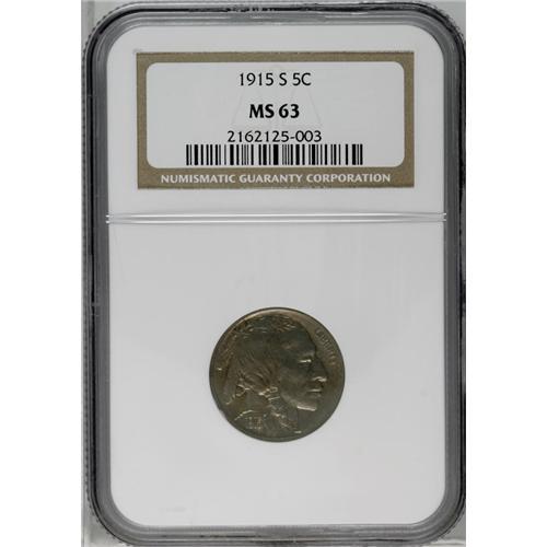 <B>1915-S<5C> MS63 NGC.</B></I> Well struck and nearly pristine, with even olive-gray toning and smooth surfaces that are a bit lacking in the luster department, resulting in the MS63 grade assessment.