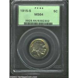 1915-S 5C MS64 PCGS. A flashier example of this popular early Buffalo could hardly be imagined. Both