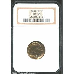 1915-S 5C MS65 NGC. Here's a Buffalo Nickel issue that is only common in well worn grades at or belo