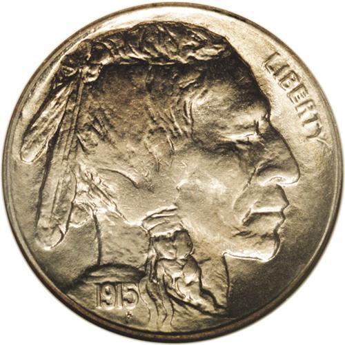 <B>1915-S<5C> MS65 NGC.</B></I> This Gem is typical of most examples with brilliant satiny luster beneath pale gold color. The fields are slightly reflective as usual. The obverse of this example has slight machine doubling, much different in appearance than true doubled die coins.