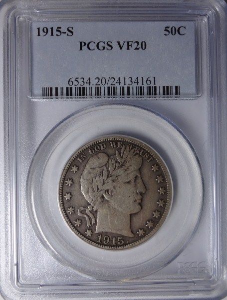 1915-S BARBER HALF DOLLAR PCGS VF20 EST. $95-$110