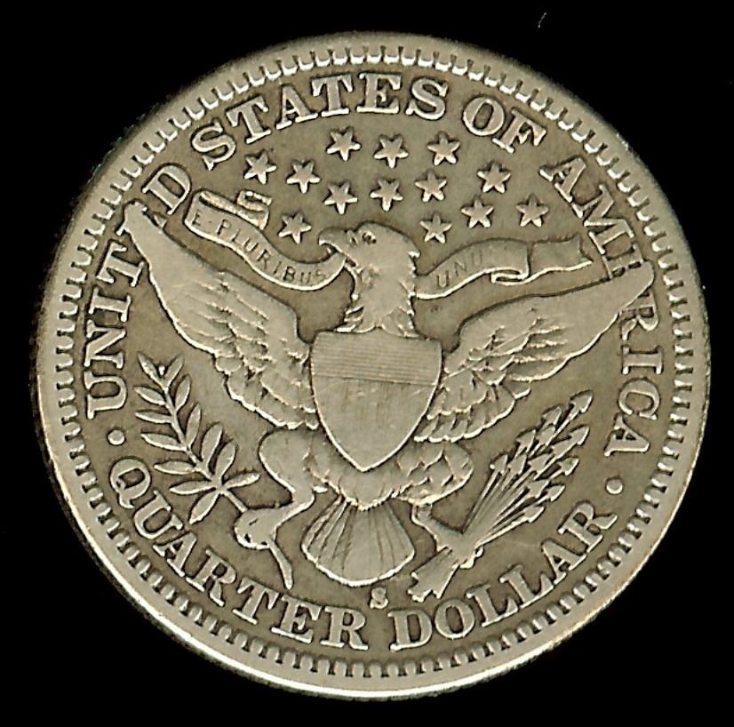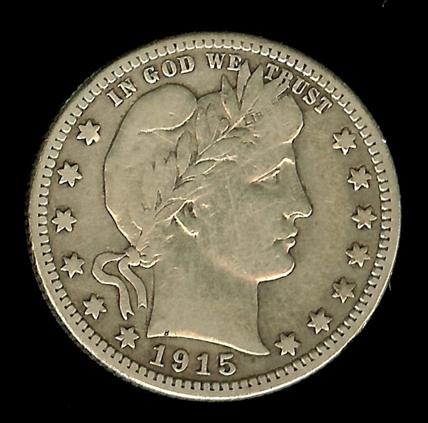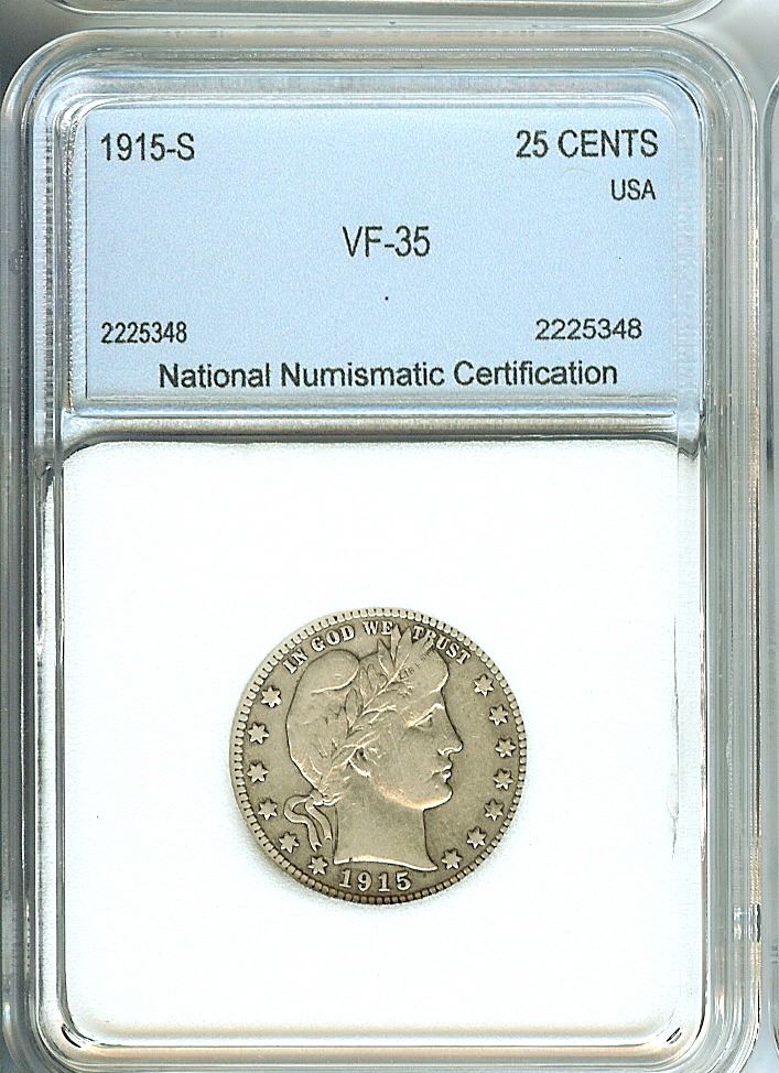 1915-S BARBER SILVER 25 CENTS VF-35 SCARCE!