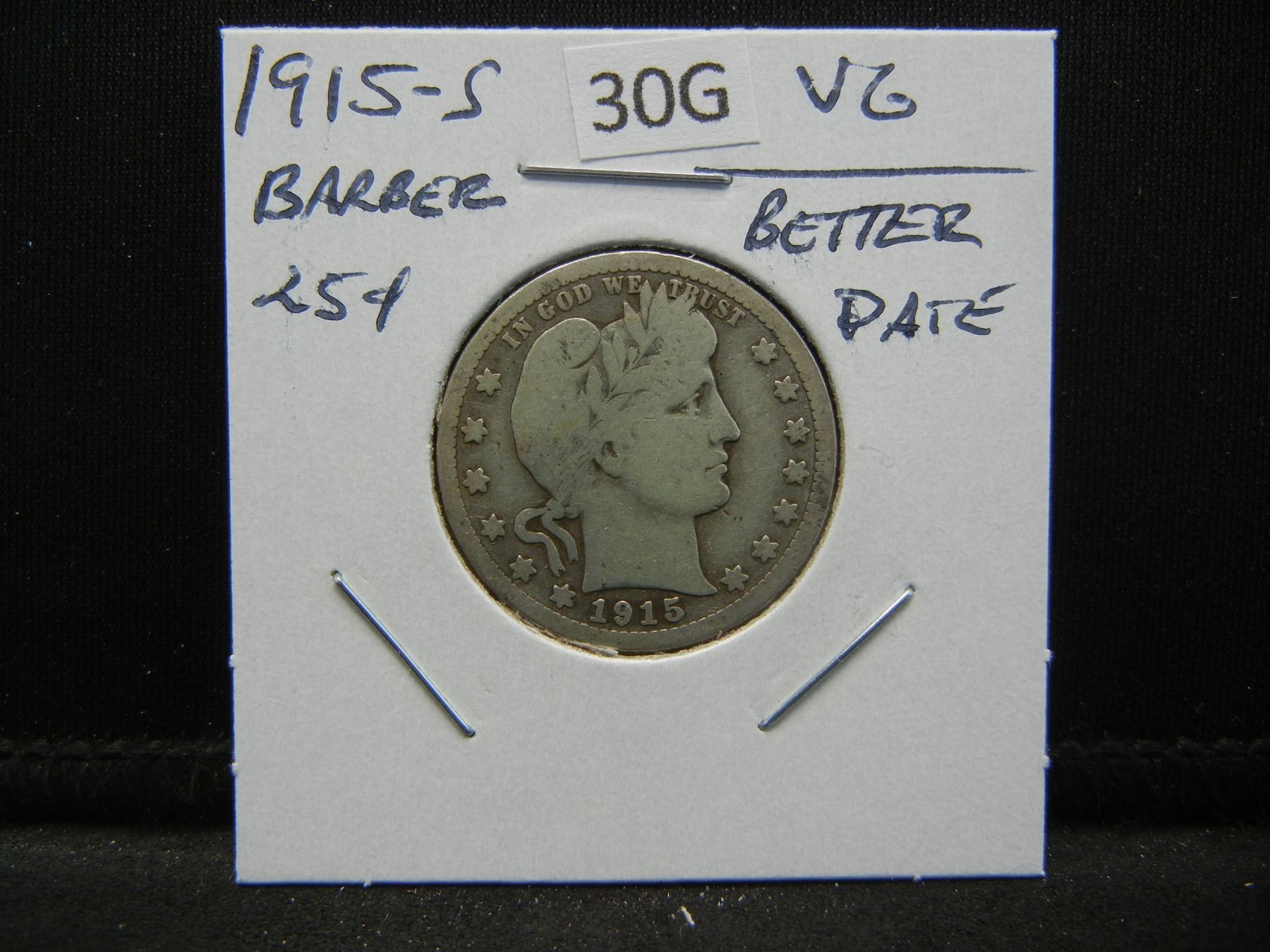 1915-S Barber 25c. VG. Better Date.