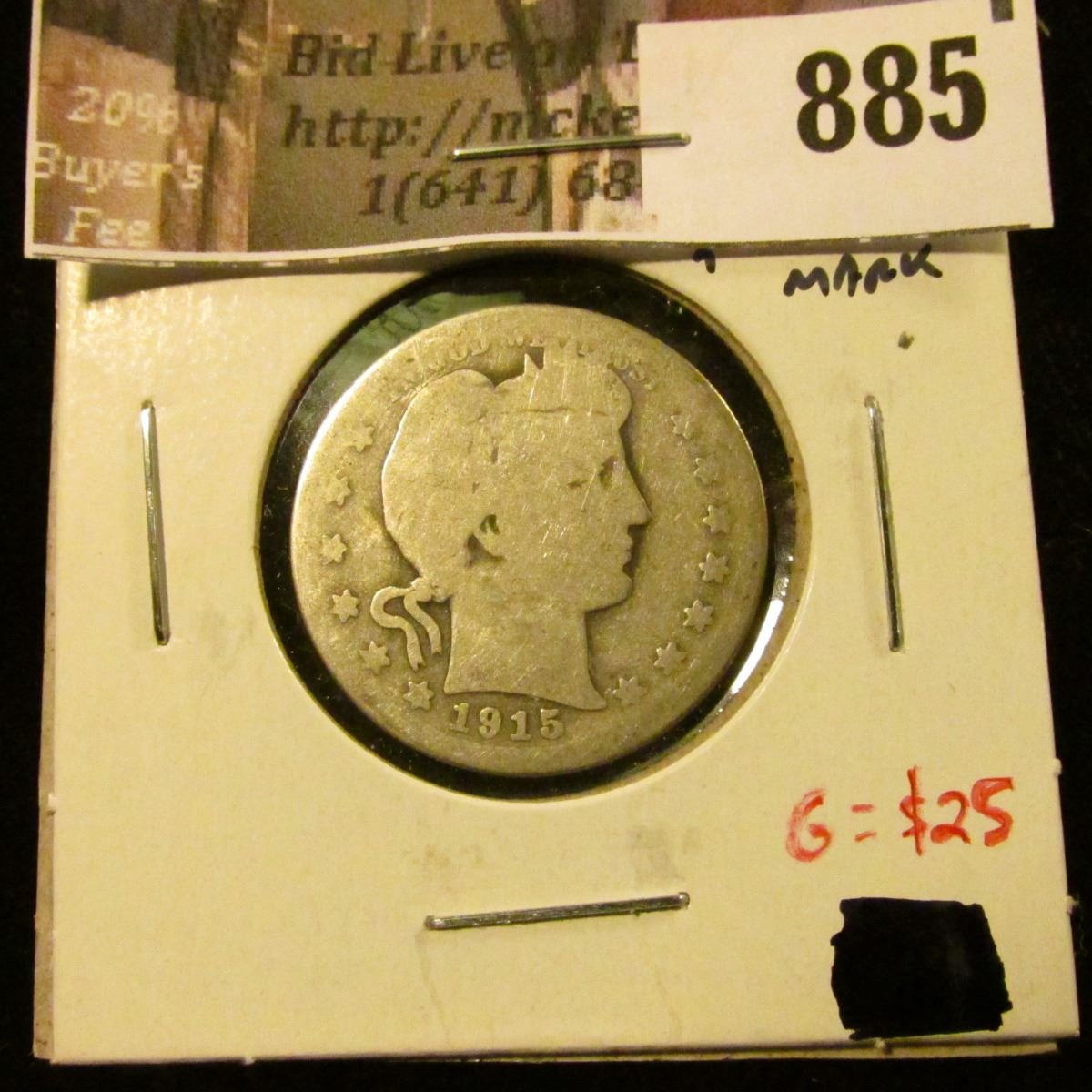 1915-S Barber Quarter, AG clear date and mintmark, low mintage semi-key date, G value $25