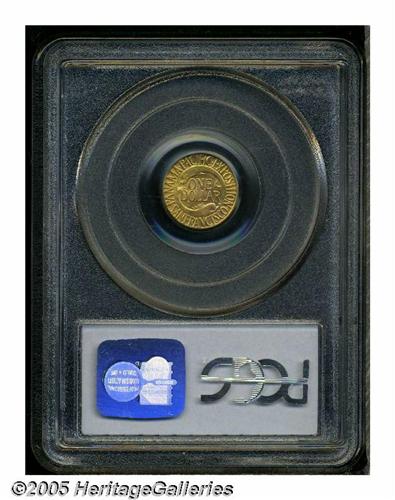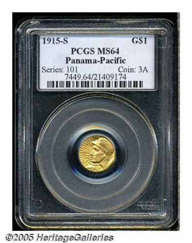 <B>1915-S<G$1> Panama-Pacific Gold Dollar MS64 PCGS.</B></I> Well struck and lustrous, with unusually rich pink-rose and orange-gold toning. A small mark, on the jaw of the Panama Canal laborer, prevents the Gem grade designation.